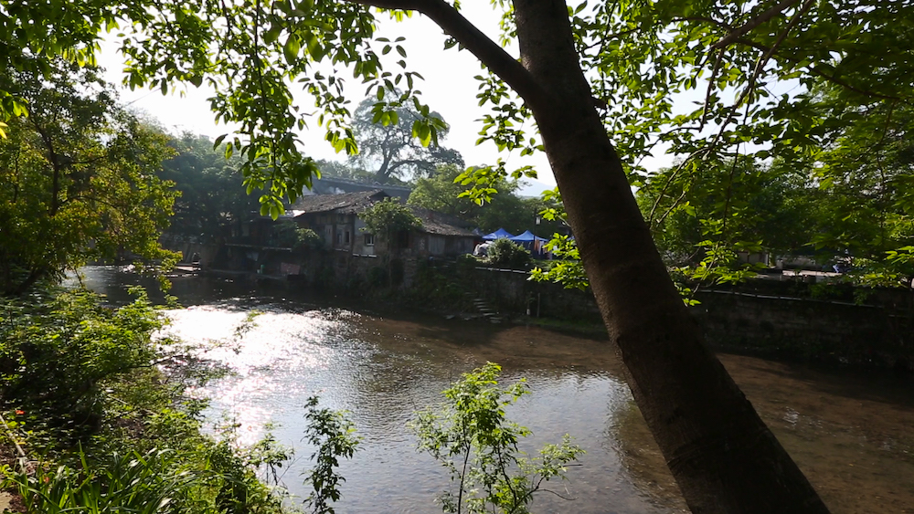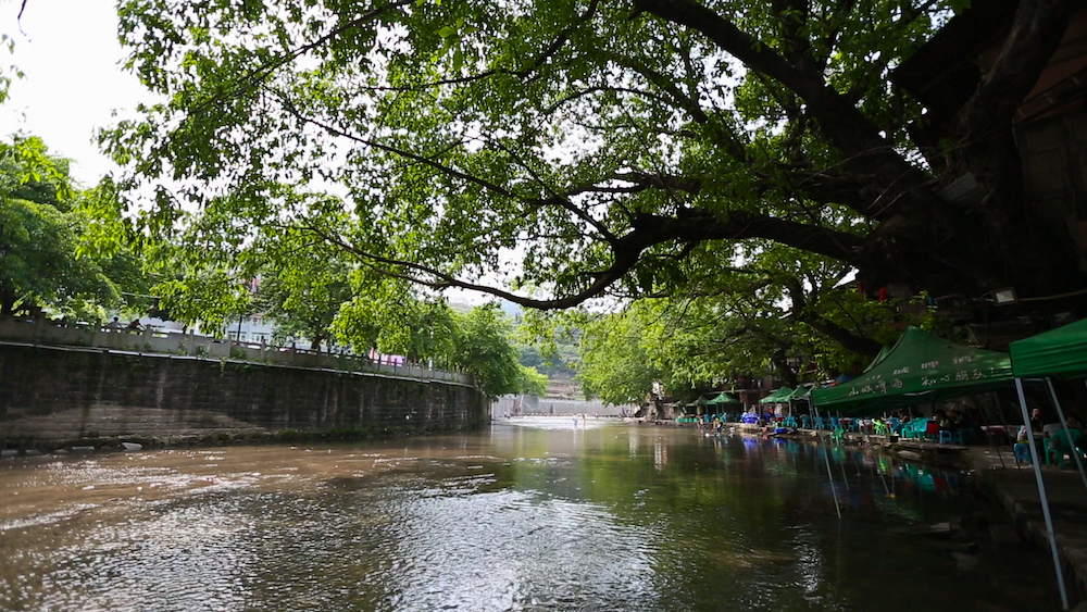 古镇依山傍水而建,幢幢木屋砖舍依山分布,重重叠叠,错落有致。一条蜿蜒曲折的黑水滩河紧紧环抱着古镇,缓缓流动的河水清澈见底,河岸高大粗壮的黄桷树疏密相间,掩荫着傍水而筑的民居小舍。一座长条青石的小桥跨水横亘,连接着镇外的通道。古镇处处透着恬淡之美,颇具“小桥、流水、人家”般的诗情画意。集“古镇、美镇、红镇、名镇”为一体的特色。