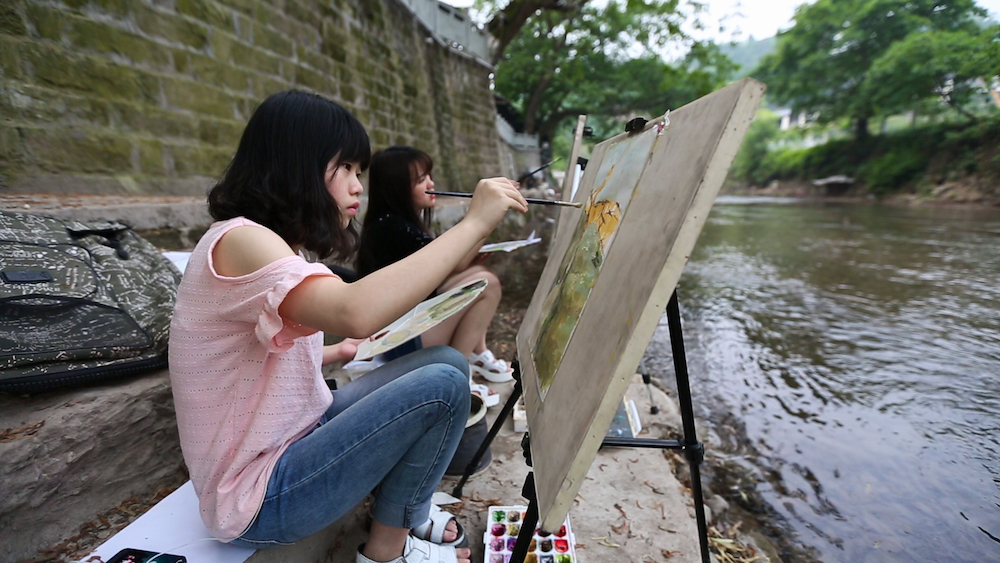 古镇上人来人往,很是热闹。偏岩手工铁匠铺位于上场横街,它与其它铁匠铺的不同之处主要在于女子打铁。打铁历来被人们视为重体力劳动,理所当然的应该是男子汉的事情。但是偏岩铁匠铺却有一位巾帼不让须眉的女子,整日在此挥臂抡锤,锻打铁器,成为古镇的一道靓丽风景。